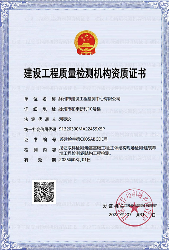 徐州市建設(shè)工程檢測中心有限公司(以下簡稱徐建檢測公司)是徐州市產(chǎn)城發(fā)展集團有限公司(以下簡稱產(chǎn)城集團)的全資子公司。徐建檢測公司前身為徐州市建設(shè)工程檢測中心,2018年事轉(zhuǎn)企改制,2020年4月,完成轉(zhuǎn)企改制資產(chǎn)劃轉(zhuǎn)工作。 徐建檢測公司是集檢測、檢驗、鑒定、咨詢等技術(shù)服務(wù)為一體、具有獨立法人資質(zhì)的綜合性第三方服務(wù)機構(gòu)。公司主要從事建設(shè)工程領(lǐng)域相關(guān)工程質(zhì)量檢測及技術(shù)咨詢服務(wù),業(yè)務(wù)覆蓋地基基礎(chǔ)、建筑材料、建筑結(jié)構(gòu)、鋼結(jié)構(gòu)工程、市政工程、綠色建筑節(jié)能工程、建筑安全與施工設(shè)備、建筑防水、建筑水電、裝飾裝修、建筑物防雷、室內(nèi)環(huán)境、房屋安全鑒定、城市軌道交通工程等專業(yè)領(lǐng)域。......